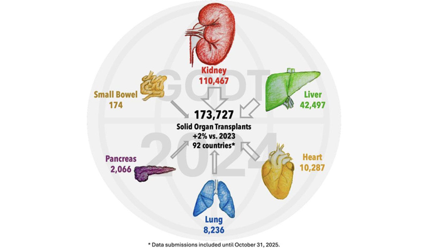 The report found that 173,727 solid organ transplants were performed worldwide in 2024, the highest number yet reported to the GODT, representing a 2% increase from 2023. This growth was driven largely by deceased donation, particularly donation after circulatory determination of death (DCD), which accounted for 28% of all deceased donors and increased by 17% compared with the previous year.