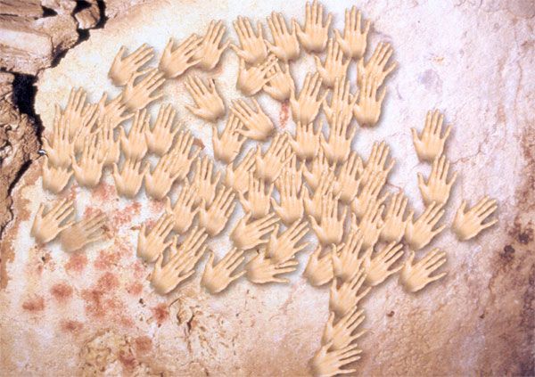 Relevé des gestes de l'artiste sur le "panneau de la Mammarhino", Salle Brunel, Grotte Chauvet Pont d'Arc > Cliché D. Baffier/V. Féruglio