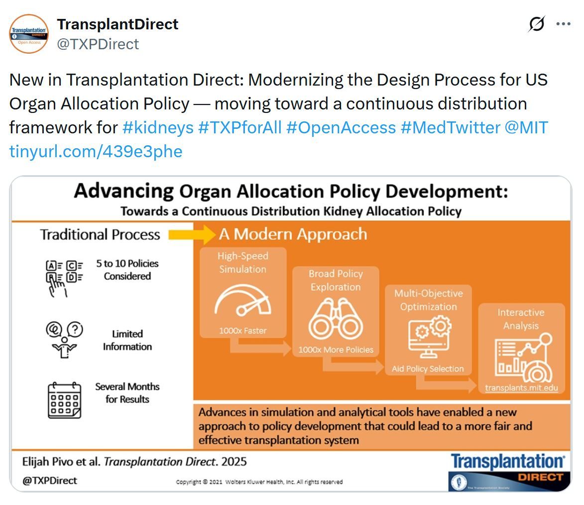 The allocation of a limited supply of donor organs remains a critical challenge for organ transplantation. The analytical tools that policymakers rely upon for improving allocation policy have seen little advancement since the introduction of computer simulation in 1995. In recent years, simulation has increasingly become a bottleneck in the policy design process. Partnering with the Organ Procurement and Transplantation Network Kidney Transplantation Committee, our team introduced new analytical techniques into the policy design process.